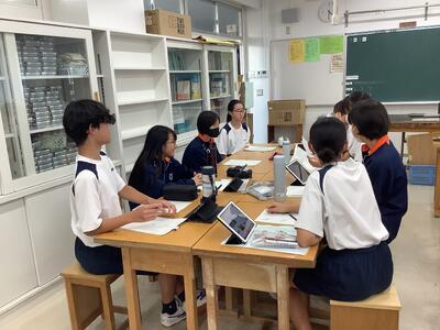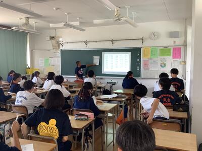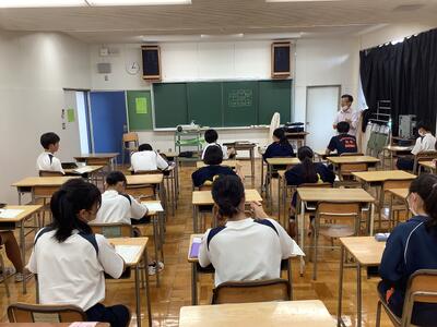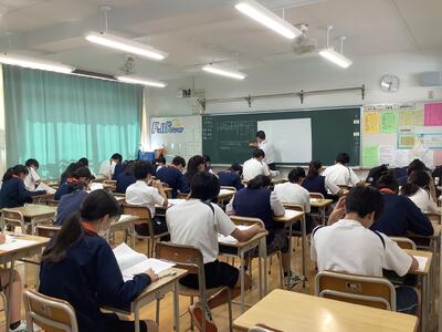 本日は5時間授業だったため、放課後に時間の余裕がありました。多目的教室では、地域未来塾が開催され、3年生を中心に自主学習に励む様子がありました。また、1年生のクラスでは、1学期末に行われた校外学習の新聞作りが行われていました。