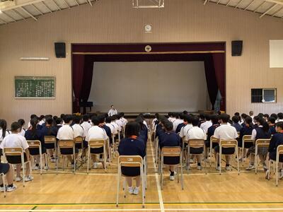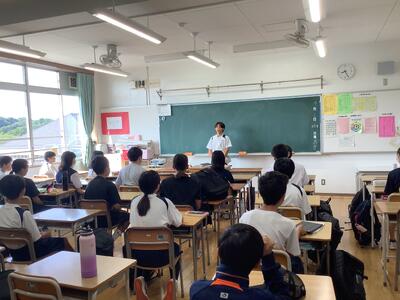 暑い中、大勢の方にご来校いただき、ありがとうございます。午後は、5校時(13:10から)は、各教室にて道徳授業地区公開講座が、6校時は教科授業がございます。また、14:10からは、図書室にて道徳授業の意見交換会が予定されておりますので、是非ともご参加ください。