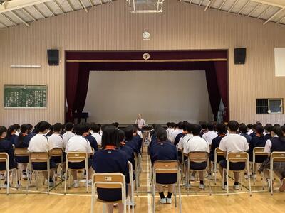 面接や小論文など、進路に関して学年集会が行われました。生徒は、いつも以上に真剣な様子で話を聞いていました。