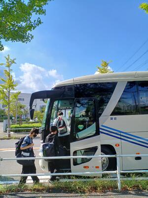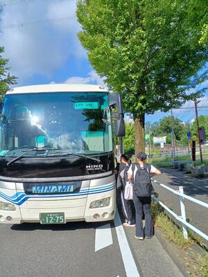 予定通りに学校を出発しました。生徒は、バスで会話が弾んでいます。天候に恵まれていい移動教室になりそうです。