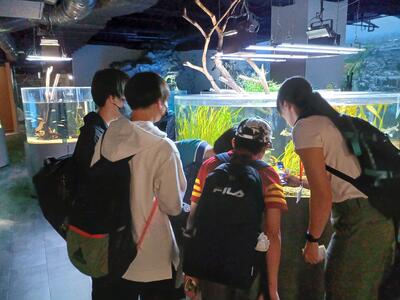 かわさき宙と緑の科学館では、自然界の展示物が分かりやすく配置されていました。プラネタリウム鑑賞の前には、みんな興味をもって見学していました。