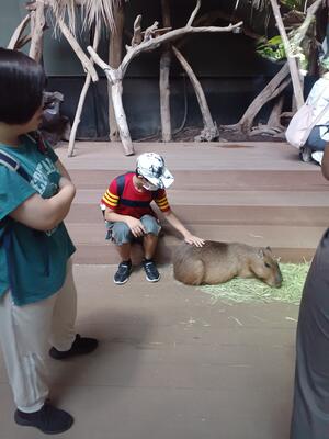 見学の最後は、珍しい動物たちにふれあう体験をしました。
