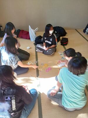 部屋の清掃を終え、出発まではそれぞれの部屋でカードゲームを楽しんでいました。