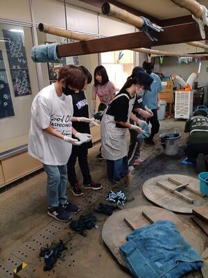 藍染体験始まりました。どんな作品が出来上がるのか楽しみです。
