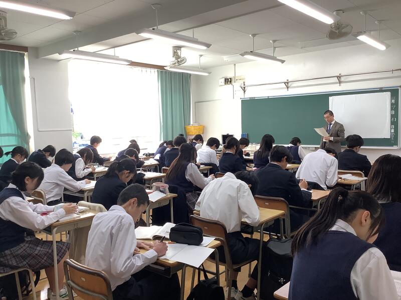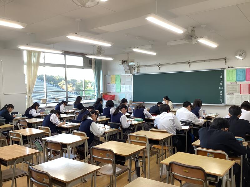 18日からの期末考査に向け、いつもは朝の時間に行っている朝読書から、朝学習に移行しています。短い時間ですが、特に3年生はこれを有効に使おうと、とても高い集中力で臨んでいます。