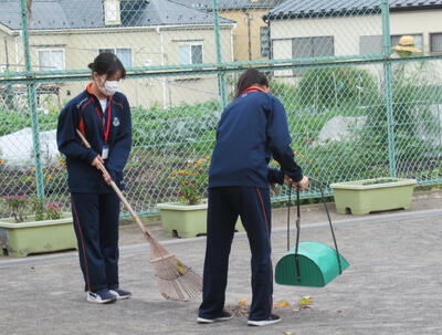 ここ最近は朝夕の冷え込みが一段と厳しくなり、それとともに紅葉が色濃くなってきました。と、同時に落ち葉も増え始め、校舎の周りや校庭に枯れ葉が舞うようになっています。学校では、用務員さんが週に何度も落ち葉をきれいに掃いてくれるおかげで、整った環境が保たれています。
