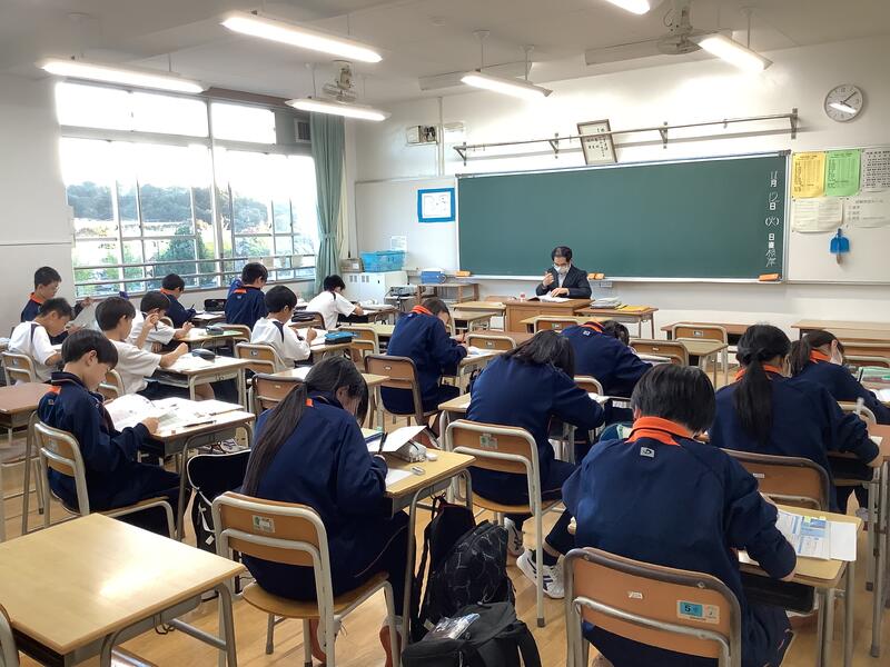 今日から期末考査一週間前となり、部活動休止期間に入りました。放課後には、部活動の代わりに放課後学習会が開かれました。今日は、3年生はまだ面談期間のため、1年生と2年生のみの開催でしたが、1年生はひとつのクラスでは入りきらないほどの生徒が集まりました。