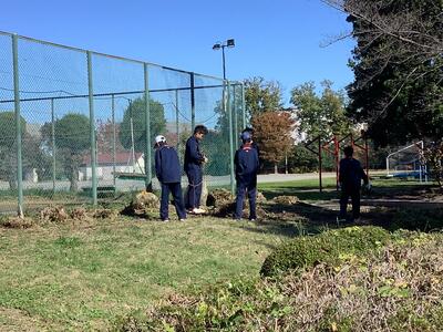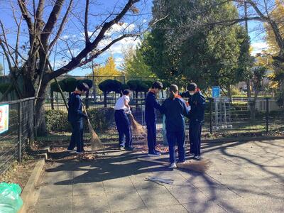 生徒会本部と美化委員会が中心となって、地域清掃が行われました。先日の青少協主催の地域清掃とは場所を変え、諏訪南公園•第7公園と第3公園•諏訪尾根通りの3箇所に分かれて学年縦割りグループを作って取り組みました。120名を超える生徒が集まり、朝まで降った雨で落ち葉が濡れて重くなっていましたが、たくさんの落ち葉やゴミを集めることができました。