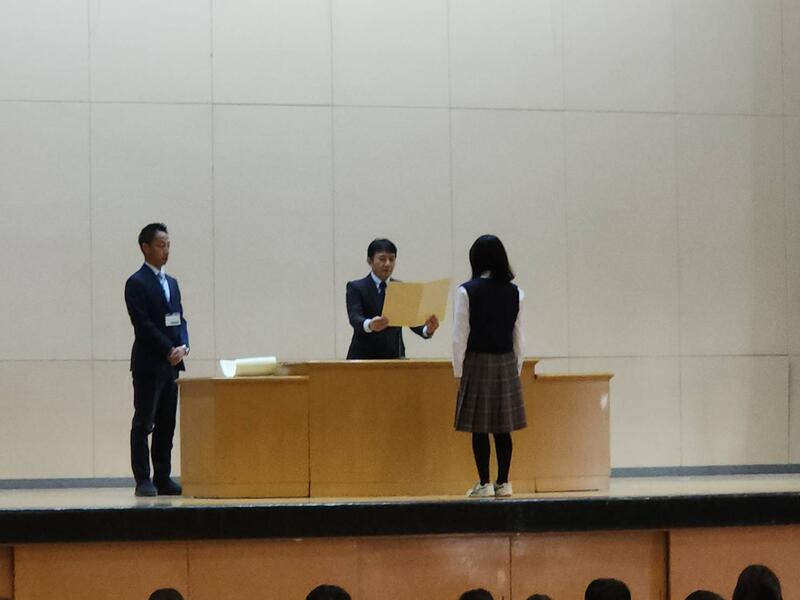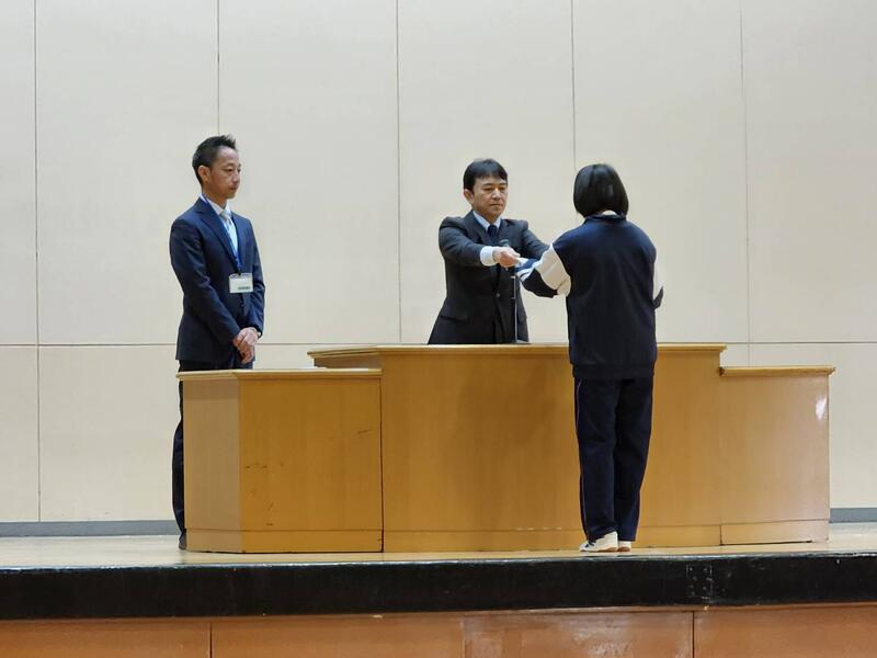 全校朝礼では、選挙についての話から、18歳で投票権を得るまでに世の中についてしっかりと考えられるようになってほしいということと、地域清掃ボランティアのように、一人ひとりの力は小さくても、同じ考えの人が合わされば大きな力になる、という話を中心に、これからの生き方や考え方について、改めて考えるきっかけにしてほしいと話しました。また、柔道•税についての作文•歯と口の健康に関するポスターコンクールの表彰を行いました。