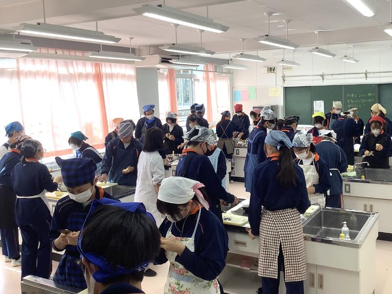 調理実習では、どの班も時間内にきちんと出来上がり、実食することができました。大変美味しくいただくことができました。生徒の笑顔がとても印象的でした。