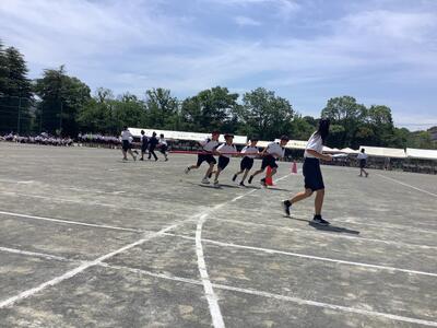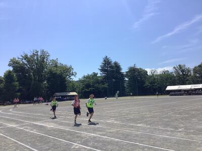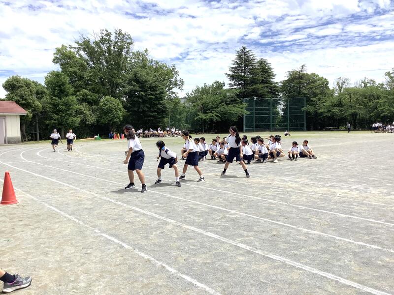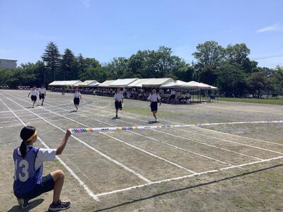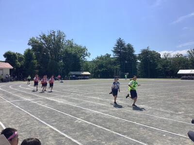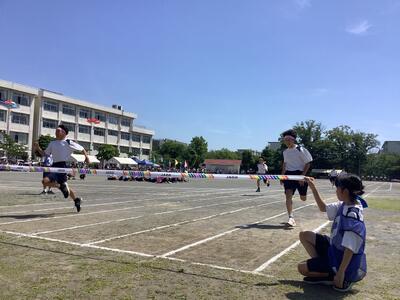 雲が出て、運動をするにはちょうどよい陽気となりました。100m走は各学年1レースだけでしたが、2年生の全員リレーは通して行われ、3年生の応援を得た5組が1位となりました。