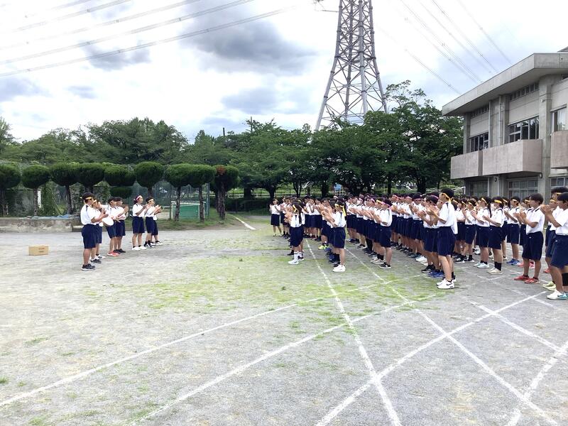 昨日に引き続き、終学活後に体育館に集まって、2組への表彰を改めて行いました。その際に、悔しい思いもあったかと思いますが、全てのクラスから拍手があったのは立派でした。