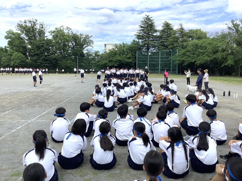 運動会を終え、体育の授業ではスポーツテストの測定を行っていました。今日の種目は、ハンドボール投げと50m 走でした。自己記録を更新した人が多かったようです。