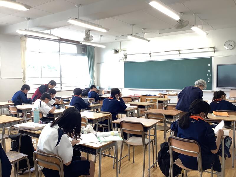 朝読書の時間を使って、クラスによりアンケートを行ったり、定期考査に向けての自習を行ったりしていました。