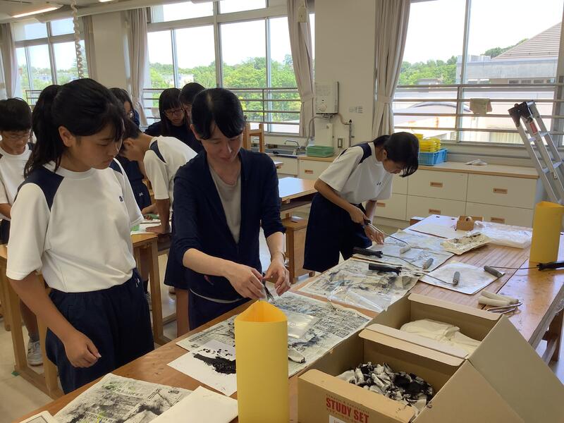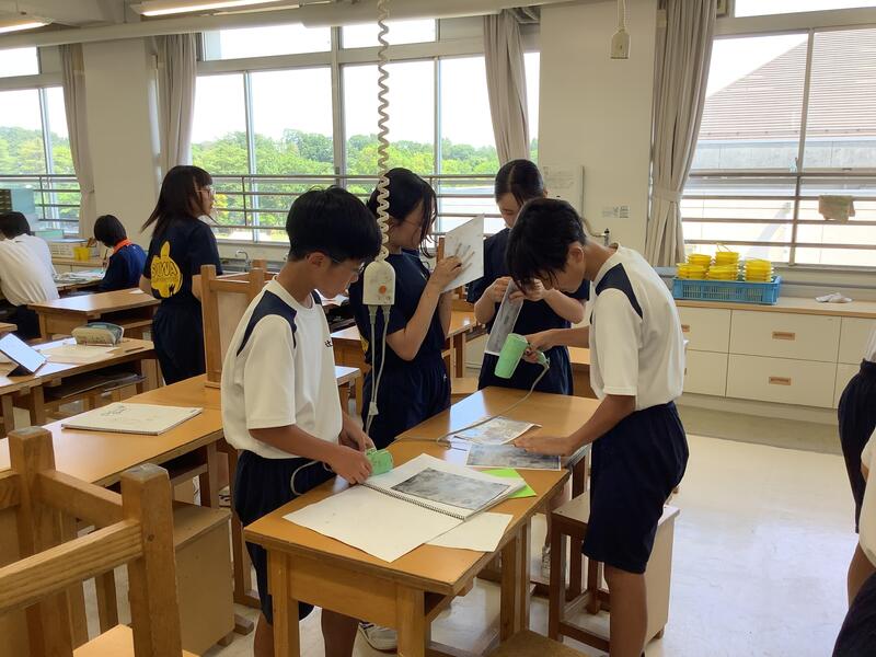 2年生の美術です。メディウム剥がし刷り版画の制作が進んできています。どんな仕上がりになるか楽しみです。