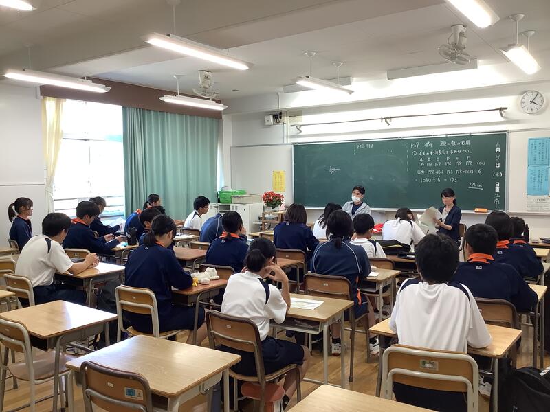 1年生の技術です。まず、期末考査に向けての総復習として振り返りをしました。積極的に質問に答える様子がありました。授業の後半は、製図についての学習でした。初めての体験でしたが、集中しながら取り組んでいました。