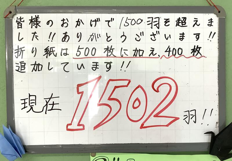 生徒会が中心になって取り組んでいるスマイルプロジェクト。昨日6/5の段階で1500羽を超えました。まだまだ伸びています。
