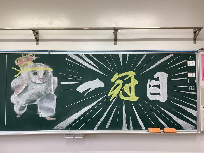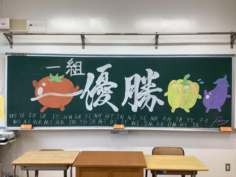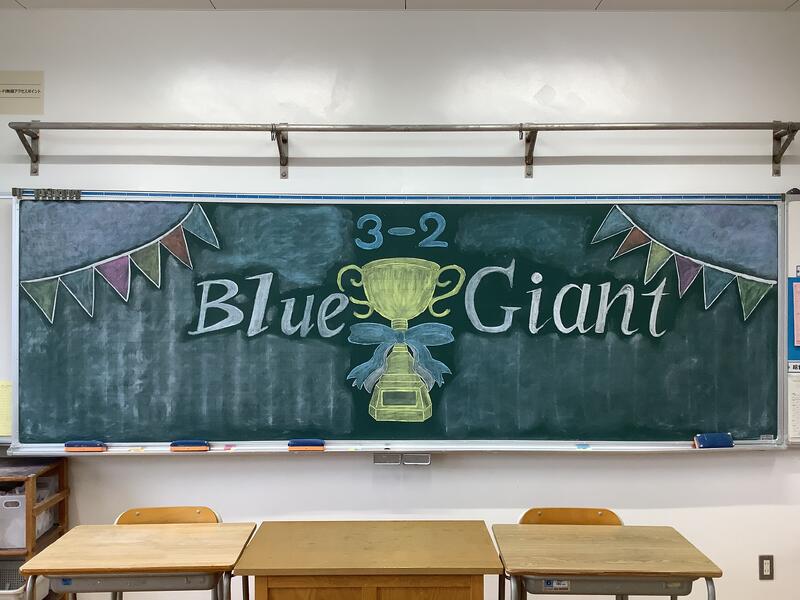 とてもいい天気になりました。それぞれの教室にはクラスの士気を高めようと黒板アートが描かれています。これまでの練習の成果を余すことなく発揮し、思い出深い1日となることを願っています。写真は3年生の黒板アートです。