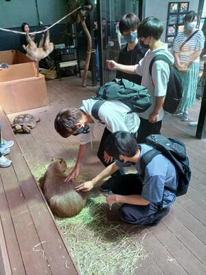 見学の最後は、珍しい動物たちにふれあう体験をしました。