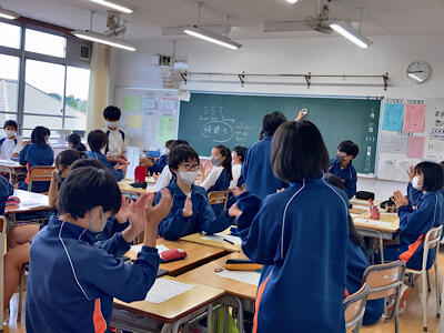 2年生では「話の聞き方」を高める授業が行われていました。相手の話にうなずいたり、相づちを打ったり、質問してみたり、コミュニケーションが円滑になると、お互いに楽しく過ごせますね。