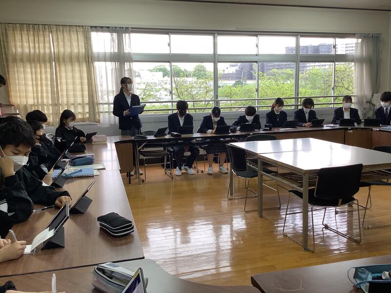 18日の放課後に今年度の第1回目となる中央委員会がひらかれました。生徒会役員•各委員長•学級委員が集まり、生徒総会に向けて今年度の各委員会の活動目標や活動内容等についての確認がなされました。活発な意見交換がなされ、多摩中学校の中心を担っているのだという自覚に溢れていました。今回からは、ペーパーレスの取組と効率化からタブレットを利用しての開催となりました。