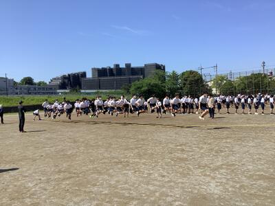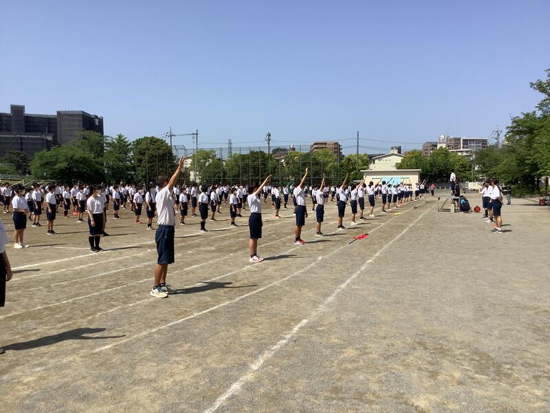 2年生の学年練習では、全員リレーと学年種目の台風の目の練習が行われました。3年生の練習ではムカデ競走の練習後に、体育的行事実行委員を中にして、3年生全員が大きな1つの輪を作り、実行委員長の呼びかけに「おー!!!」と元気よく応えていました。