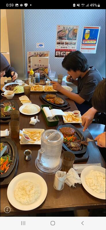 写真ミッションと買い物ミッションを終え、各班ごとに食事になりました。食事のあとは、お土産を買い、いよいよ昭和記念公園です。