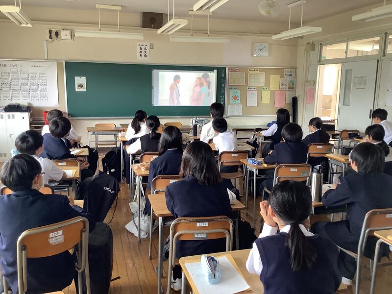 2年生の英語の授業でも、今回の試験範囲に関連する問題の演習を通して、ポイントを確認したり、曖昧だった箇所をもう一度整理したりしていました。また取り扱った内容に関する映像資料を確認することにより、理解をいっそう深めていました。
