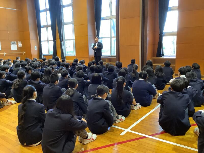 今日は全校朝礼を行いました。インフルエンザ等の感染症の予防のため、オンラインによる方式で実施しました。11月に行われた各学年や学級での取組の成果を確認するとともに、3年生の面接練習や2年生の校外学習についても話がありました。特に、3年間で系統的に実施する防災学習を通して生徒の皆さんに期待することについては、日頃の備えに生かしてほしいと思います。今年も残り1ヵ月、元気に過ごしましょう。