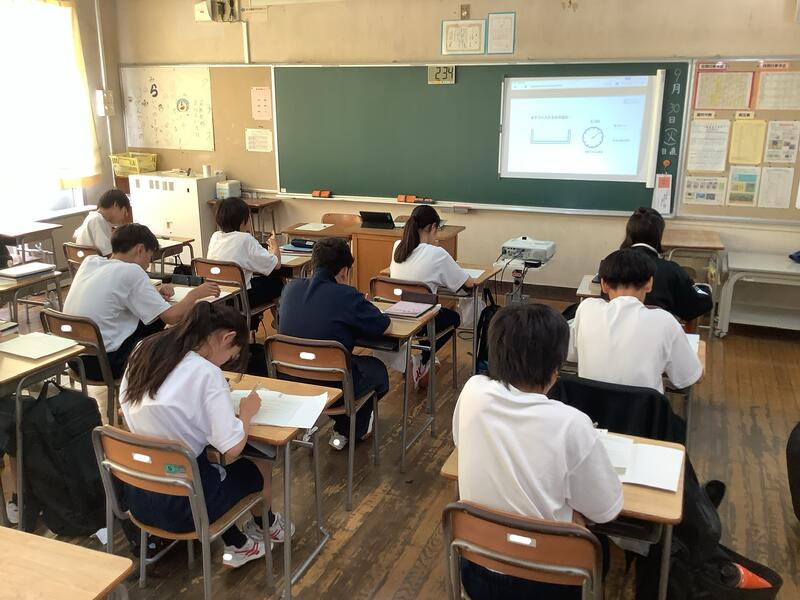 今日は秋らしい爽やかな1日となりました。また、定期テストは2日目、最終日を迎えました。どのクラスでも、テストに集中して取り組む様子が見られました。良く頑張っています。