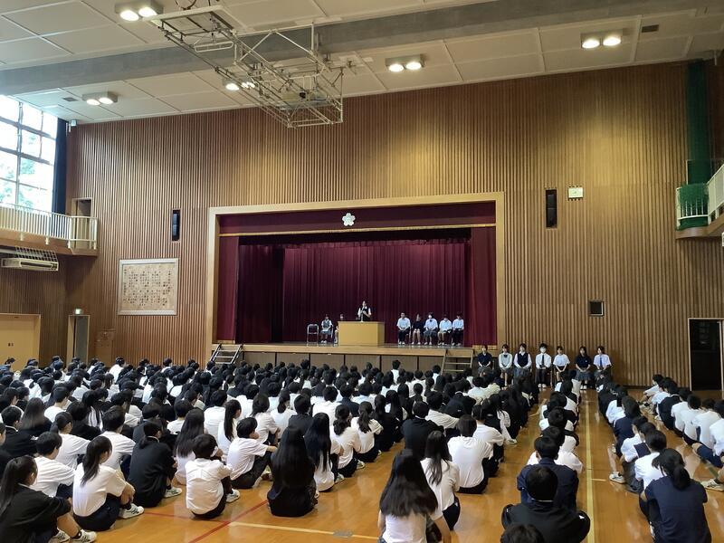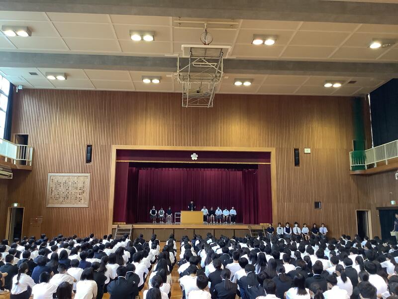 今朝は生徒会朝礼が行われました。生徒会も専門委員会も新しいメンバーとなり、初めての朝礼でした。生徒会長や専門委員長からは自己紹介や取組に関する豊富が述べられました。活躍を大いに期待したいと思います。