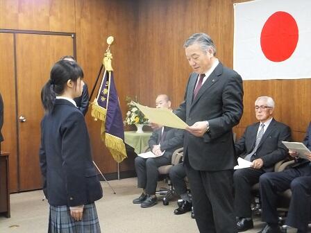 Now I am in junior high school. I want to work for people who need help. I will study hard and learn a lot about history and social systems. I hope to become a person who is kind too thers in a true sense. I’ll be glad if my speech will be an opportunity for everyone to think about others together. Thank you.