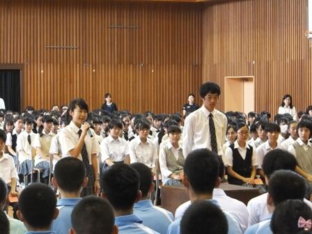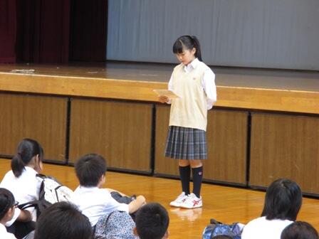 7月20日(水)1学期の終業式が行われました。各学年の代表者が、1学期を振り返りその成果を報告しました。校長先生からは、各学年の1学期のまとめと夏休みに期待することについてお話がありました。
