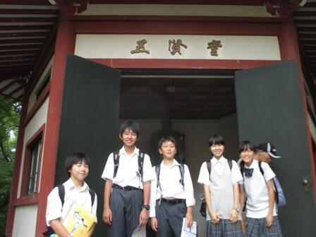 7月5日(火)1年生が校外学習「地域めぐり」に行って来ました。今回の「地域めぐり」は、多摩中で初めて行う取り組みで、地域を大切にする心を育むということや班行動を通じて協力することの大切さを学ぶということを目的として取り組み、多摩中周辺にある名所、旧跡をめぐりました。
