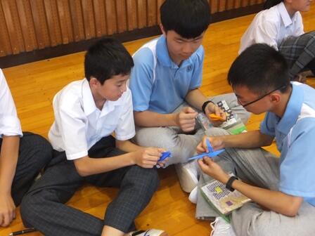 2時間目は体育館で歓迎のセレモニーを行い、全校生徒で中国の生徒をお迎えしました。3時間目は、3年生が交流を行いました。3年間学習してきた英語を活用して、剣道部、なぎなた部の紹介をはじめ、少人数のグループになって折り紙を一緒に折ったり、お互いに自己紹介に取り組んだりしました。4時間目は多摩中の授業の様子を見学しました。その後に3年の代表生徒とともに給食を食べました。