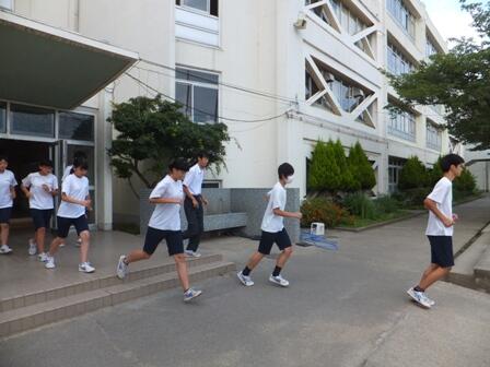 7月11日(月)避難訓練を実施しました。地震を想定して、安全かつ迅速に避難ができるように訓練を行いました。今回の避難訓練は、普段以上に素早く行動することができ、4分を切る速さで全校生徒が校庭に集合することができました。