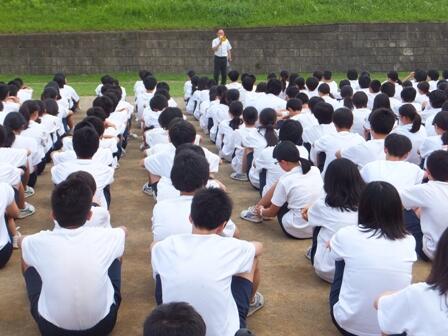 点呼後、校長先生から「災害はいつ起こるか分からないので災害を想定して訓練することが大切です」とお話がありました。について話がありました。