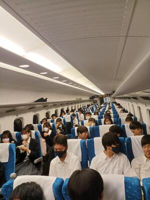 生徒はバス内で昼食をとりひと休みです。バスは奈良に入りました。連休中にもかかわらず、高速道路は渋滞もなく快適です。