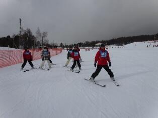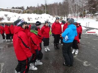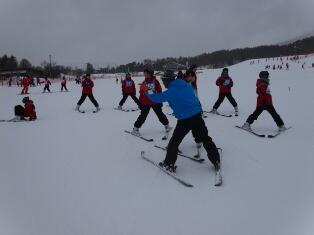 早速、1日目のスキー実習が富士見高原スキー場で行われました。インストラクターの先生から丁寧な指導を受け、初めての人も転びながらも、曲がったり止まったりする技術の習得に一生懸命に取り組んでいました。