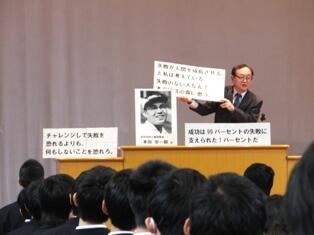 今年度初めての全校朝礼が行われ、校長先生から全校生徒に向けてお話がありました。本田技研工業創業者:本田宗一郎さんの考え方で「失敗を恐れずチャレンジを続けることが大事であり、失敗は成長するために必要不可欠である」と伝えました。本田宗一郎さんの言葉を忘れずに日々の勉強や部活動などを頑張ってほしいと思います。