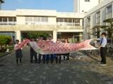 5月14日(木)の給食後、各縦割りブロックに分かれて大縄跳びの練習を行いました。初めての縦割りでの練習でしたが、3年生が大きな声を出して1、2年生をリードし、数多く飛べるように練習に取り組んでいました。