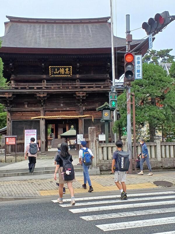 高幡不動尊で朝の会を行い、今日のミッション(写真撮影と指定の買い物)を確認した後、班ごとの散策を行いました。