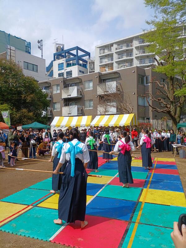 なぎなた部が、2日(日)に開催された「せいせき桜まつり」に招待され、参加してきました。聖蹟桜ヶ丘オーパ前のさくら広場と九頭龍公園の2ヵ所で、どちらも大勢の観客を前にとても立派な演武を披露することができました。