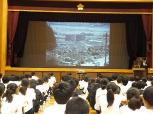 東日本大震災についての講話では、岩手県陸前高田市にある高田高校1年生で被災した岩渕恒さんを招き、当時の様子や震災時に我々にできること、命があることに感謝し学習や部活に励んでほしいというお話をいただきました。