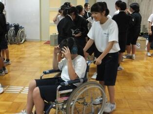 体験活動では、障がい者・高齢者疑似体験、車椅子体験をはじめ、AEDを使用した救命救急訓練、煙体験を行いました。