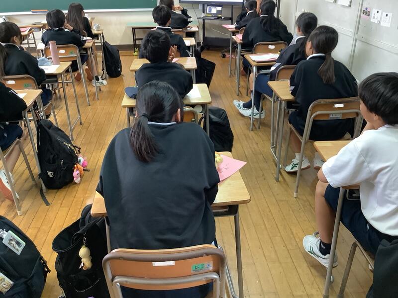 また、英語の授業では、自分の気持ちを相手に伝えることをテーマとした学習が行われていました。ペアワークなどを通して、会話を深める練習にも取り組んでいました。
