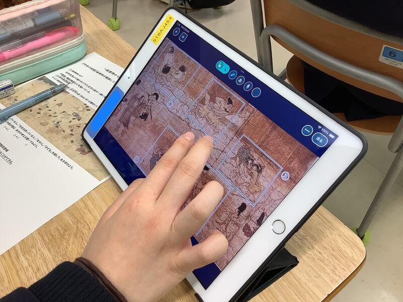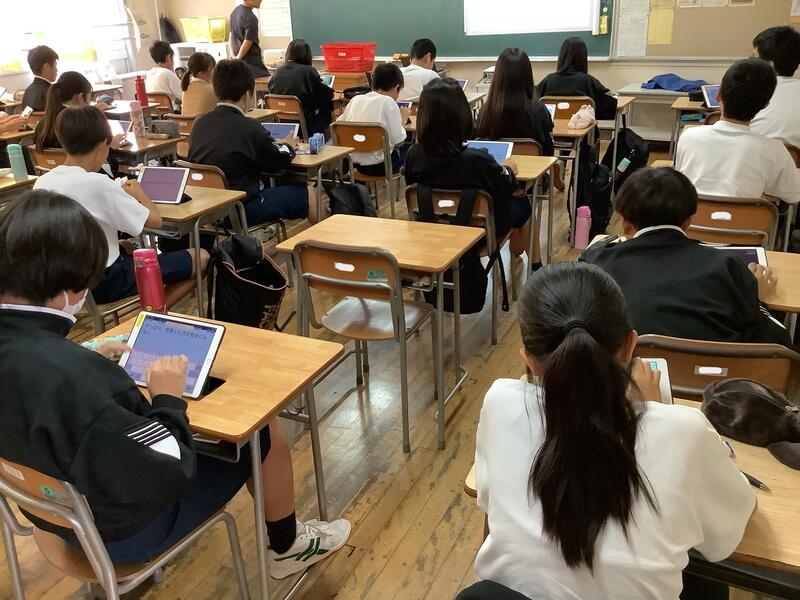 さて、1年生の歴史の授業では、大化の改新に関する学習が行われていました。Google classroomで配信された資料も確認しながら、理解を深めていました。