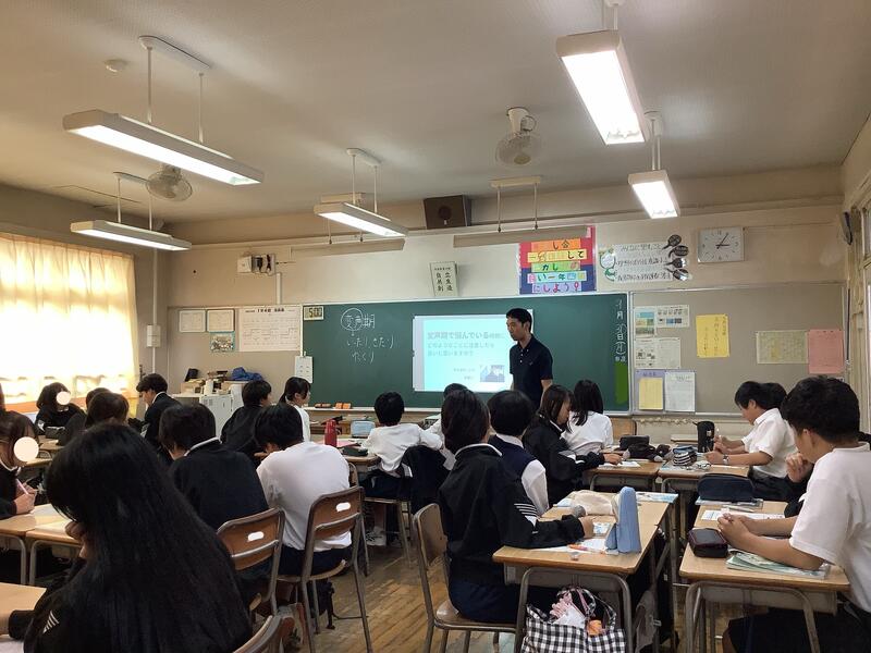 また、1年生の理科の授業では、実験ノート様子を動画で視聴し、なぜその事象が起きたのかを考察し、発表する学習が行われていました。これまで学習してきたことも踏まえて、自分たちの考えを出し合い、まとめていました。