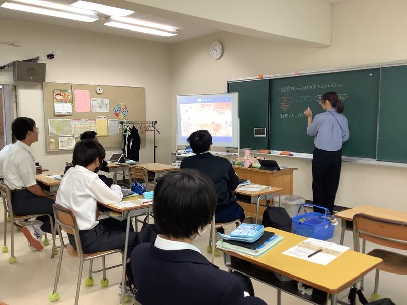 また、社会の歴史の授業では、日本国憲法についての学習が行われていました。権利に関連する事柄について、自分はどのように考えるのか、他者の意見やこれまでの生活体験、知っている情報などをもとに思考を深めていました。