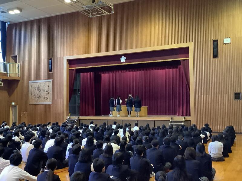 さて、今日は生徒会朝礼が行われました。生徒会長や各専門委員会委員長から活動報告が行われました。緊張感もある中で、しっかり話そうと頑張っていました。